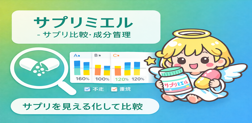 成分表を細かく読むのが苦手な方でも、日々のサプリ選びを少しでも整理しやすくすることを目指したアプリです。